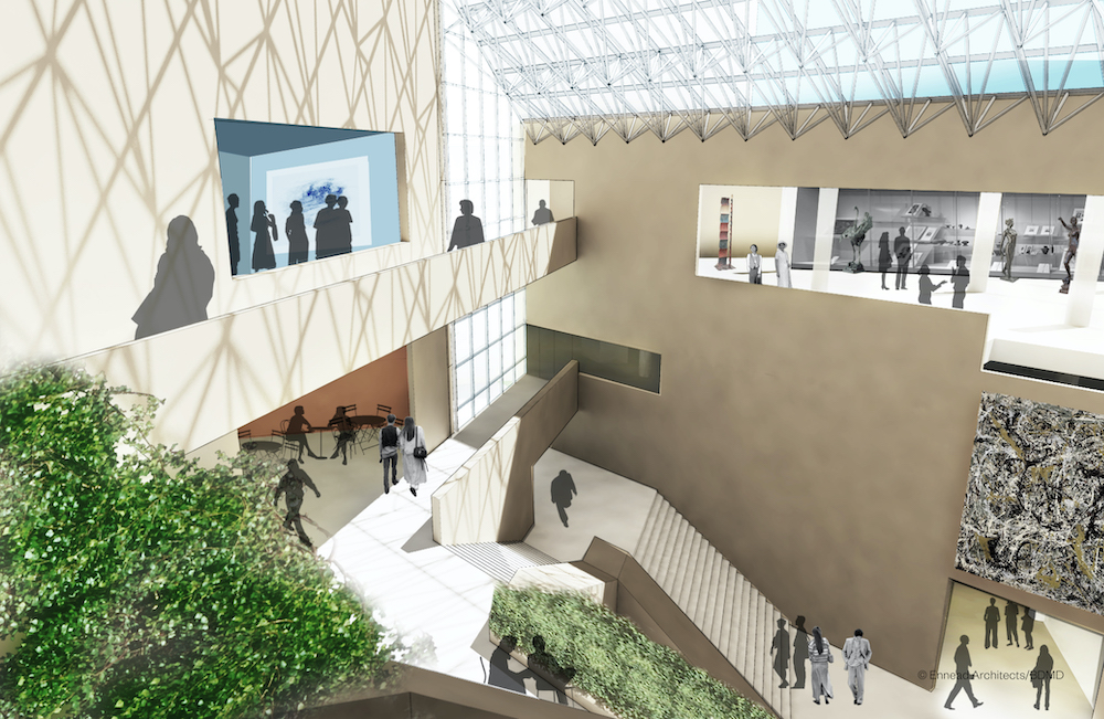 The Sidney and Lois Eskenazi Museum of Art at Indiana University has unveiled the initial design plans for the $30 million renovation to its I.M. Pei-designed building. The art museum will close to the public starting May 15, 2017. The renovation will include an additional 20,000 square feet of space, four new museum centers, a new lecture hall, and re-envisioned front and rear entrances, all while working within the existing footprint of the building. These improvements will greatly enhance the visitor experience at the museum, re-establish the Eskenazi as a state-of-the-art facility for the 21st century, and make it one of the preeminent teaching museums in the United States. Designed by Susan T. Rodriguez/Ennead Architects in New York with Browning Day Mullins Dierdorf, based in Indianapolis, the renovation and restoration is expected to be completed by fall of 2019.